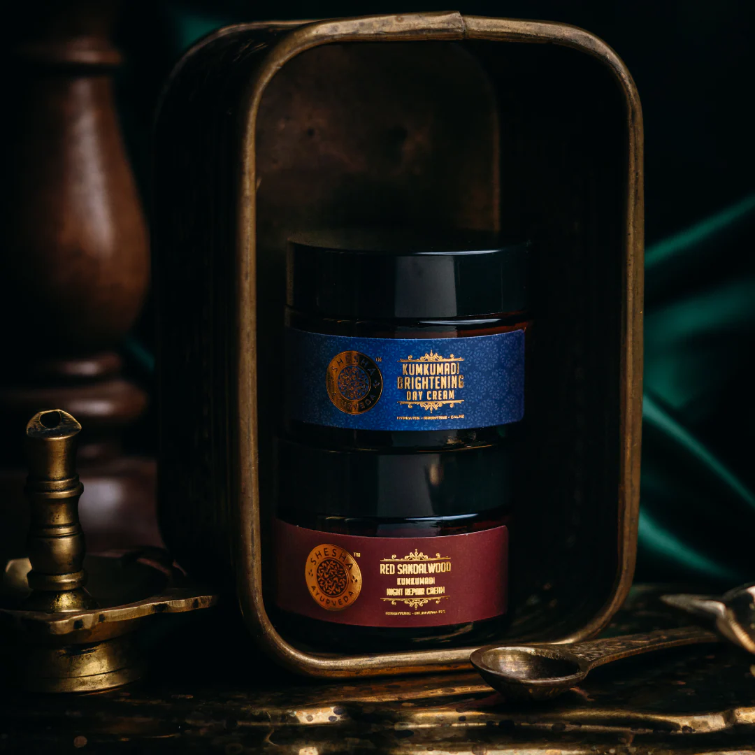 - A unique Ayurvedic formula with a luxurious blend of Red Sandalwood, Kumkumadi Thailam, and Kasturi Manjal (Wild Turmeric).