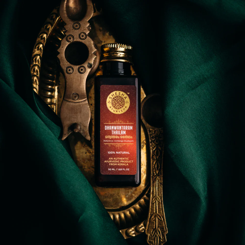 Named after Dhanwantari, the God of Ayurveda, Shesha Ayurveda's Dhanwantaram Thailam is a revered traditional formula from Ashtanga Hrudayam - the ultimate Ayurvedic treatment for expecting and new mothers. This sacred oil has been trusted for centuries to relieve body pain, strengthen muscles, rejuvenate the body, and enhance immunity during the beautiful journey of pregnancy and motherhood.